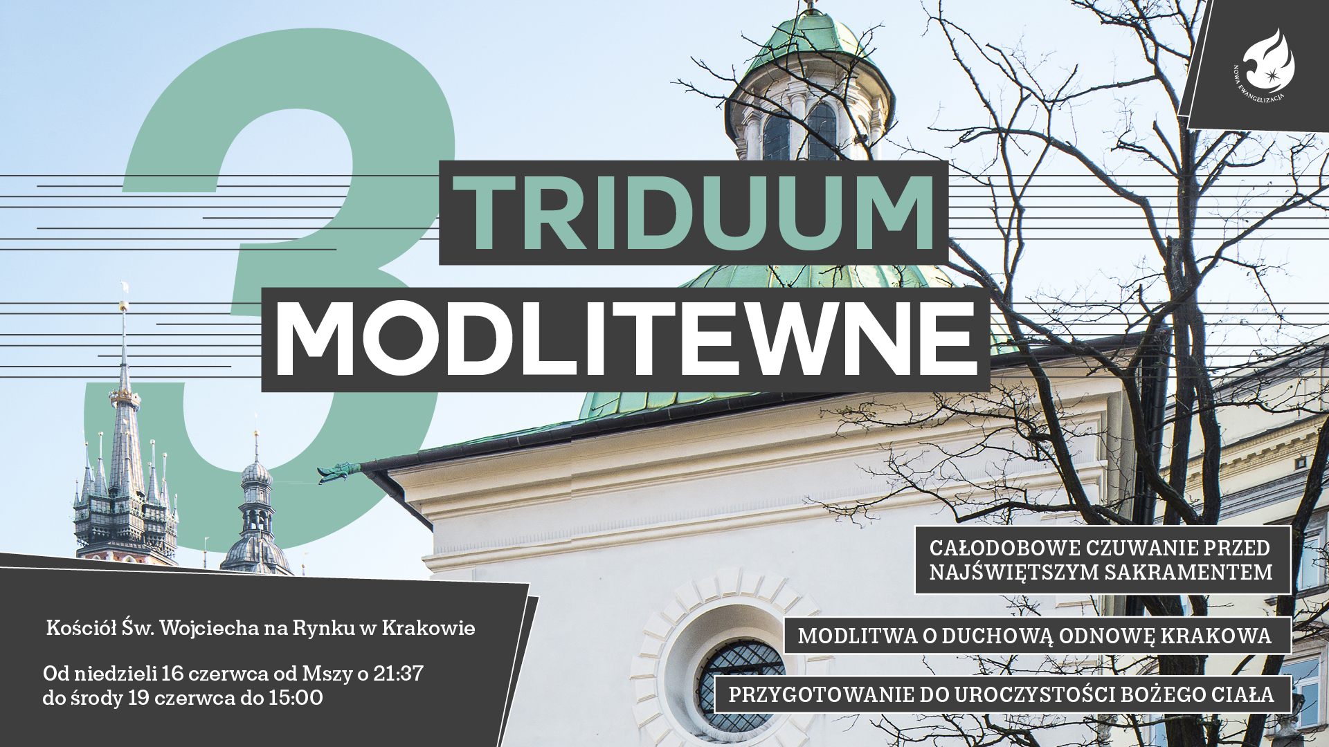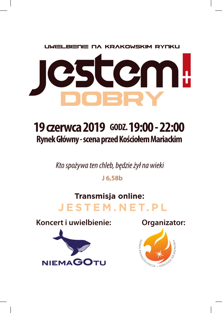 MODLITEWNE TRIDUUM będzie także wprowadzeniem do WYDARZENIA EWANGELIZACYJNEGO „JESTEM DOBRY”, które odbędzie się na Rynku Głównym przed Bazyliką Mariacką 19 czerwca (środa) w godzinach od 19.00-22.00. Bardzo gorąco proszę wszystkie krakowskie wspólnoty parafialne, Ruchy i Wspólnoty katolickie działające w Archidiecezji oraz Zgromadzenia Zakonne o włączenie się w dyżury modlitewne TRIDUUM.